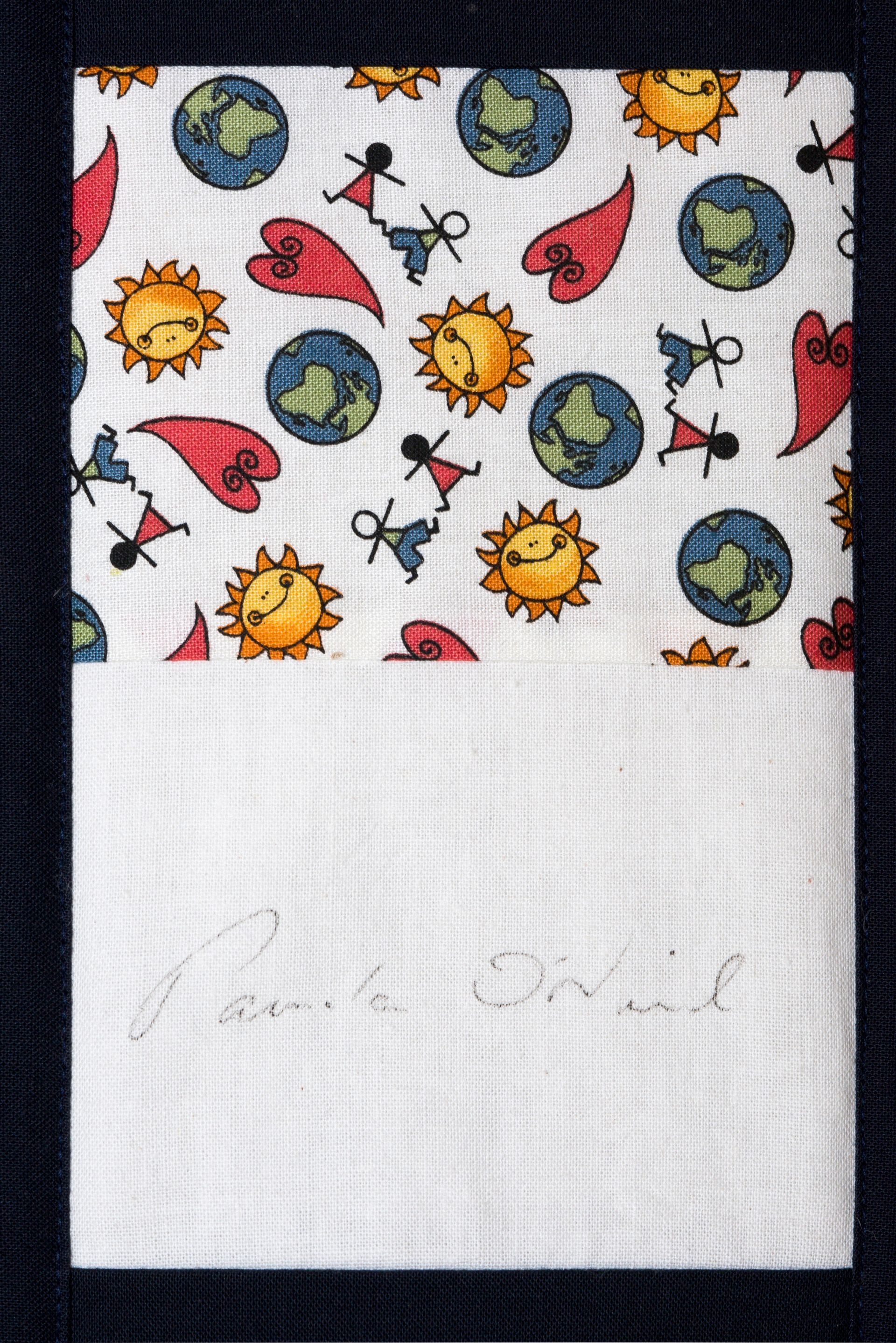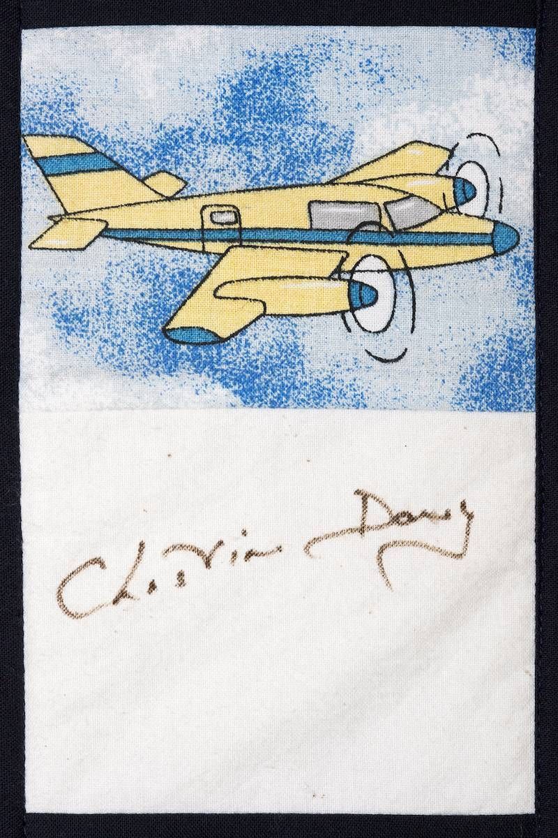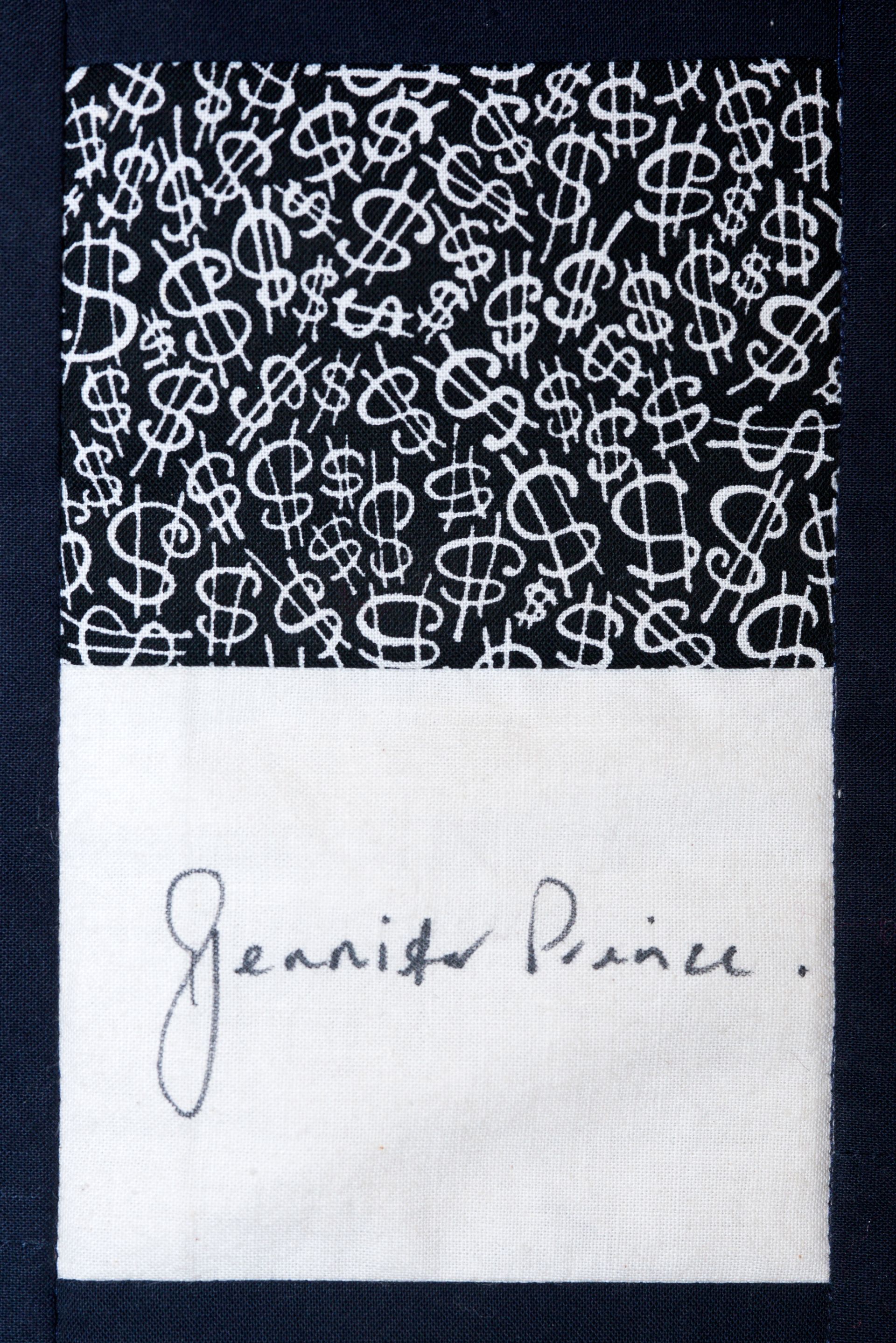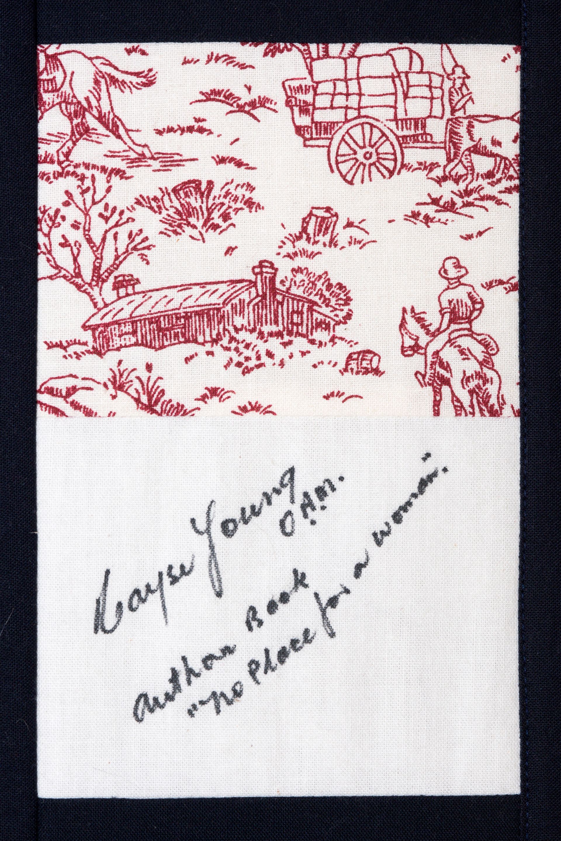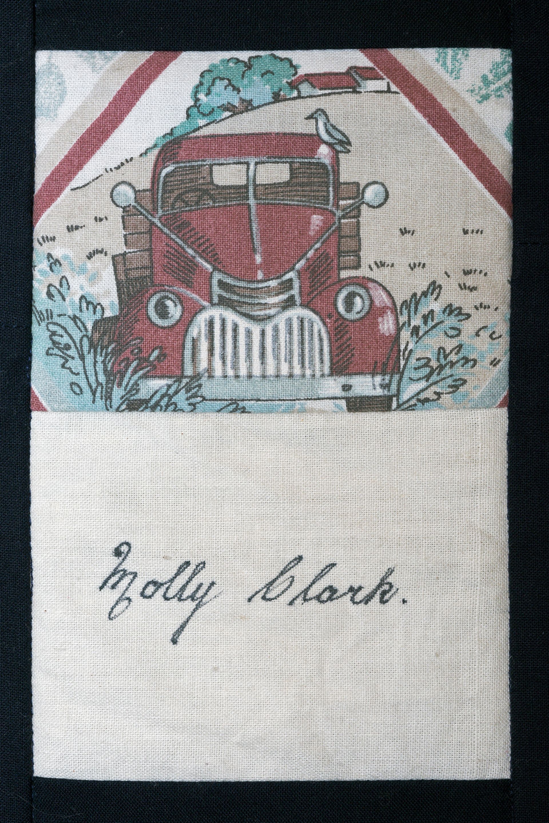 The calico rectangles are signed by Australian women who have recorded firsts or significant achievements in their fields of endeavour. The alternate patches of patterned fabric were selected to illustrate the signatories profession or achievement.