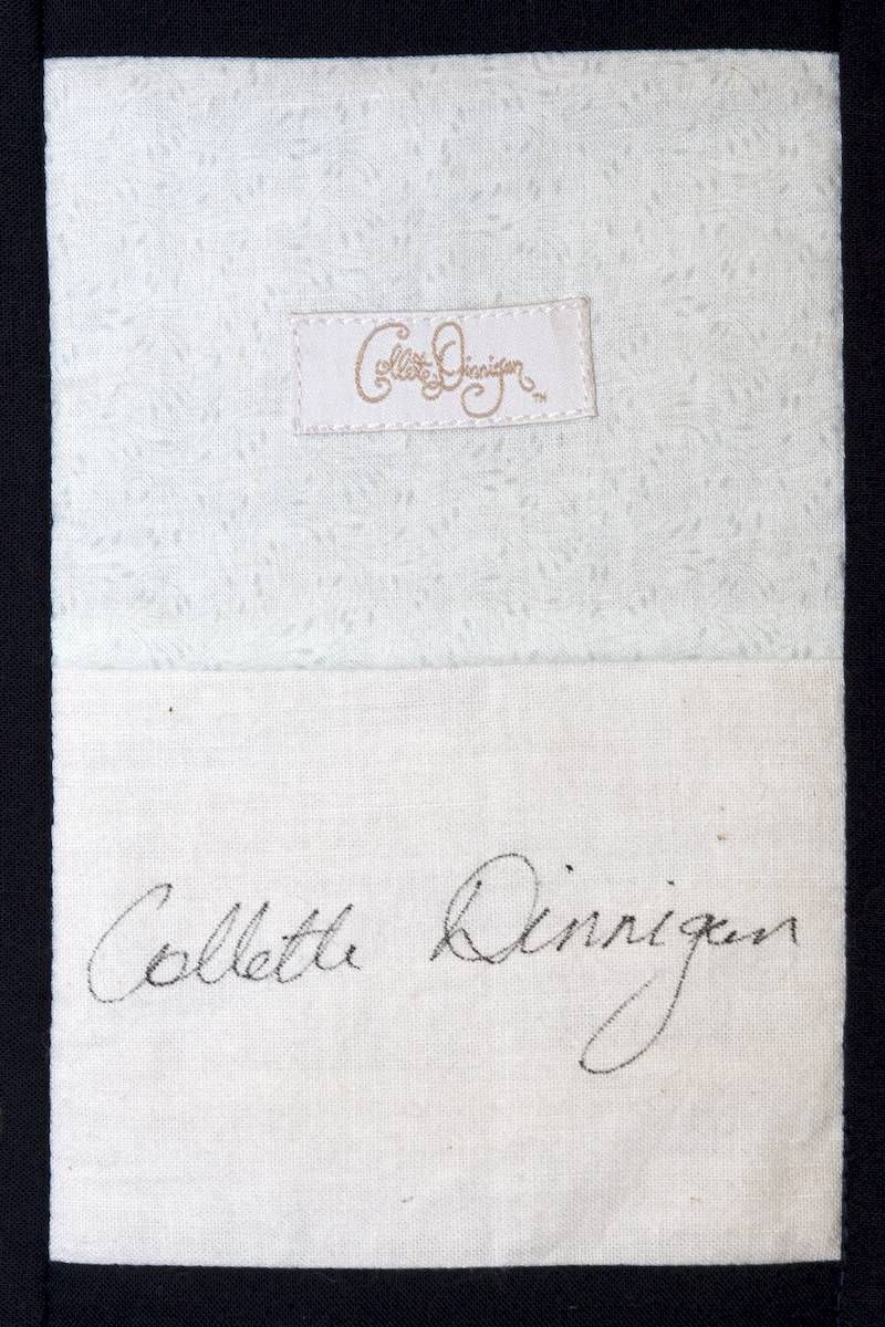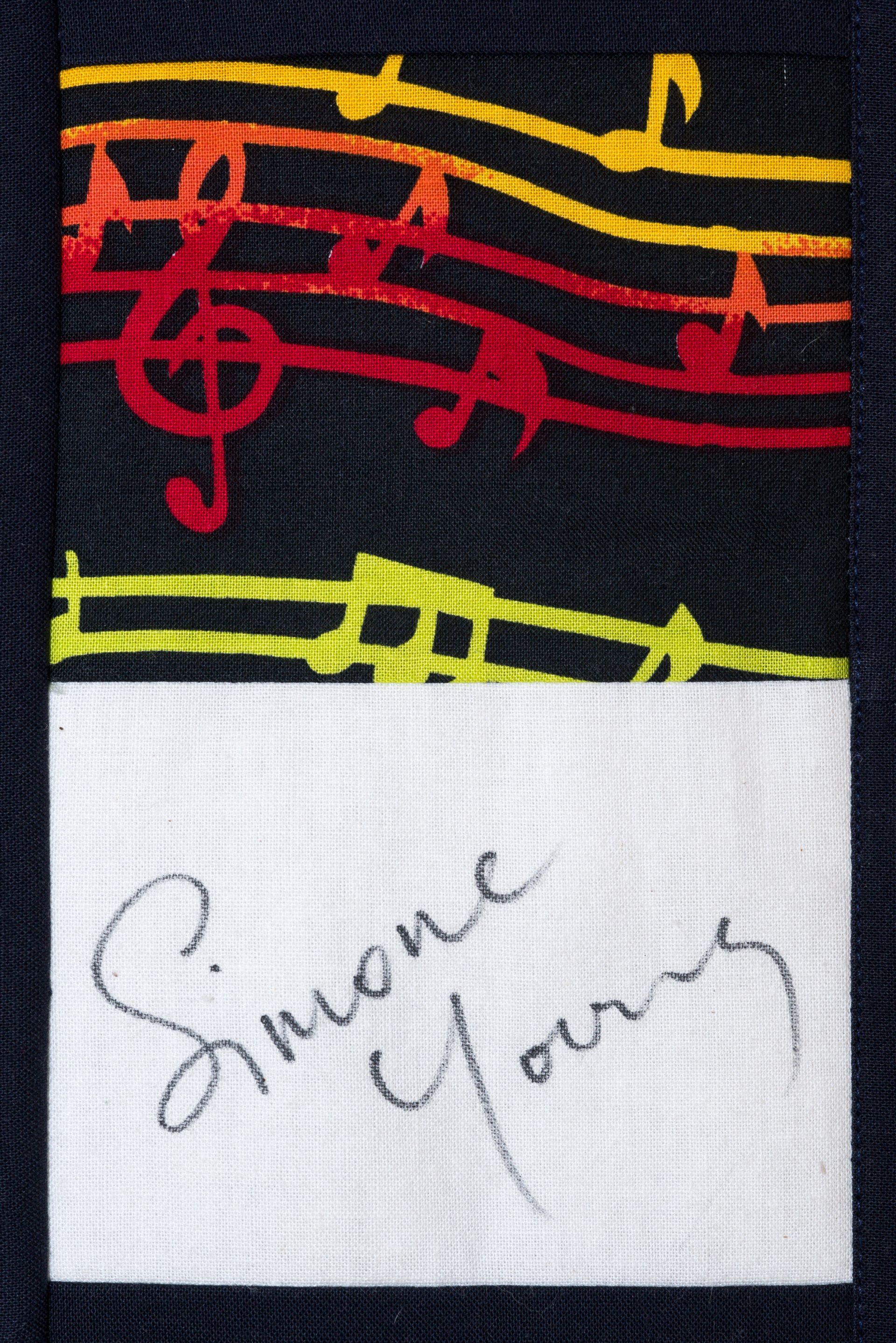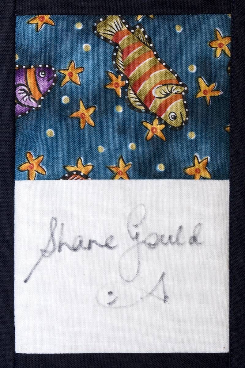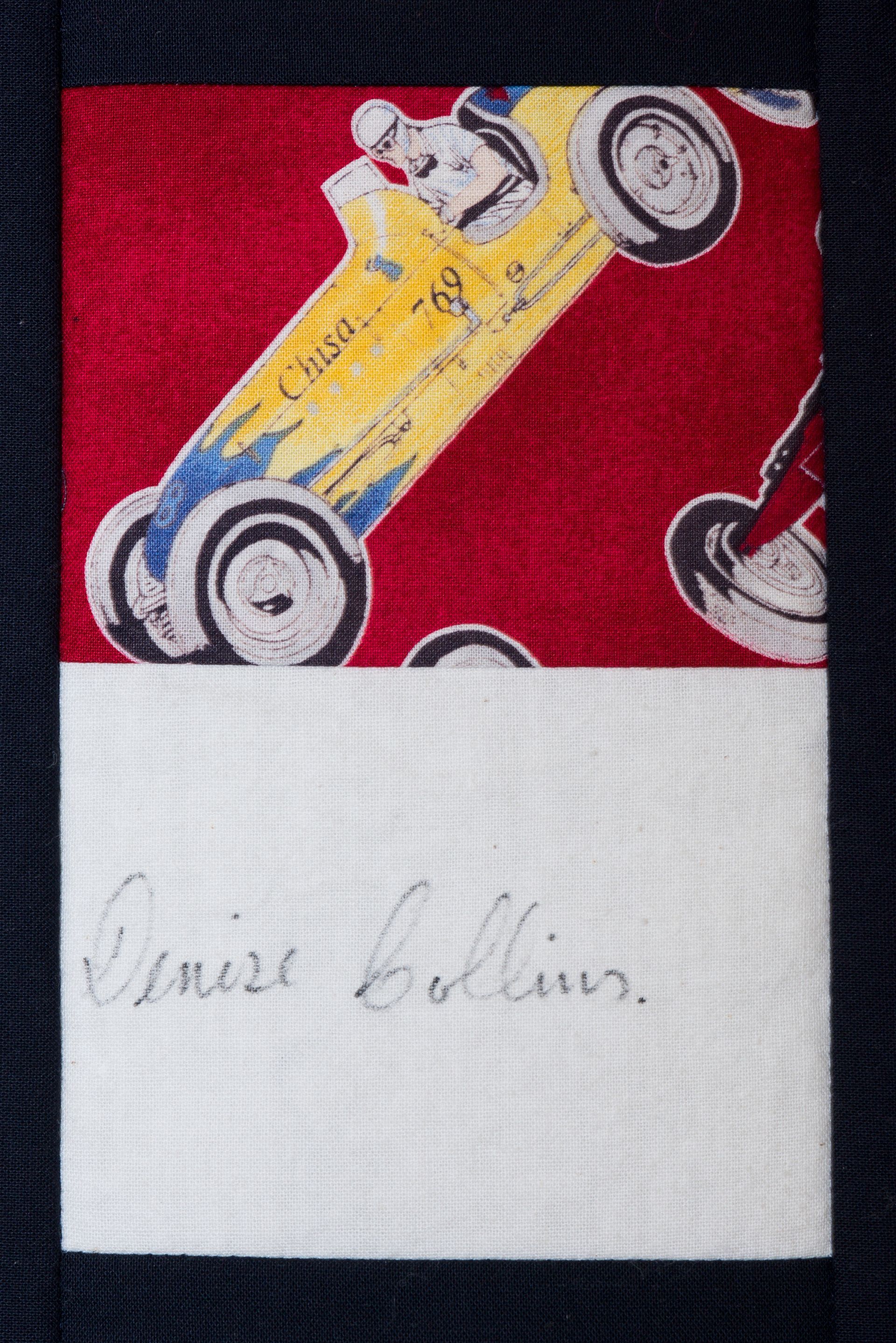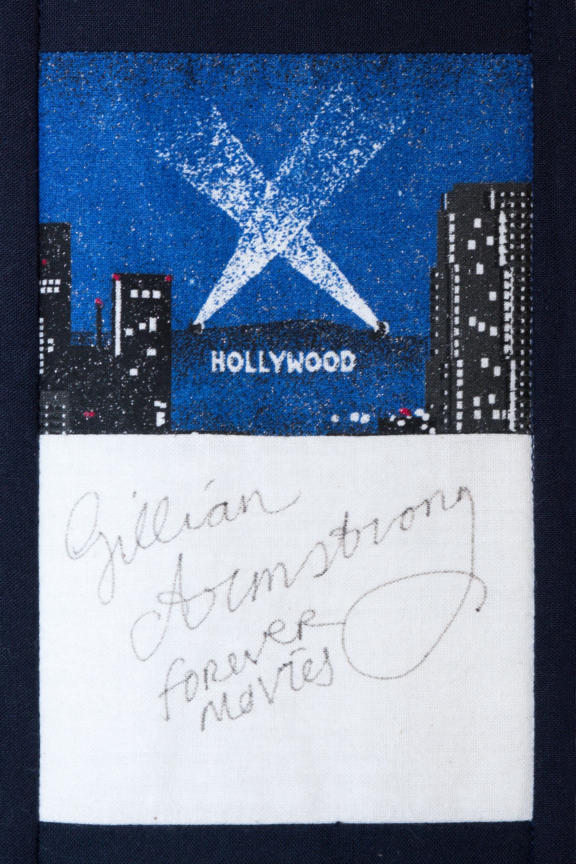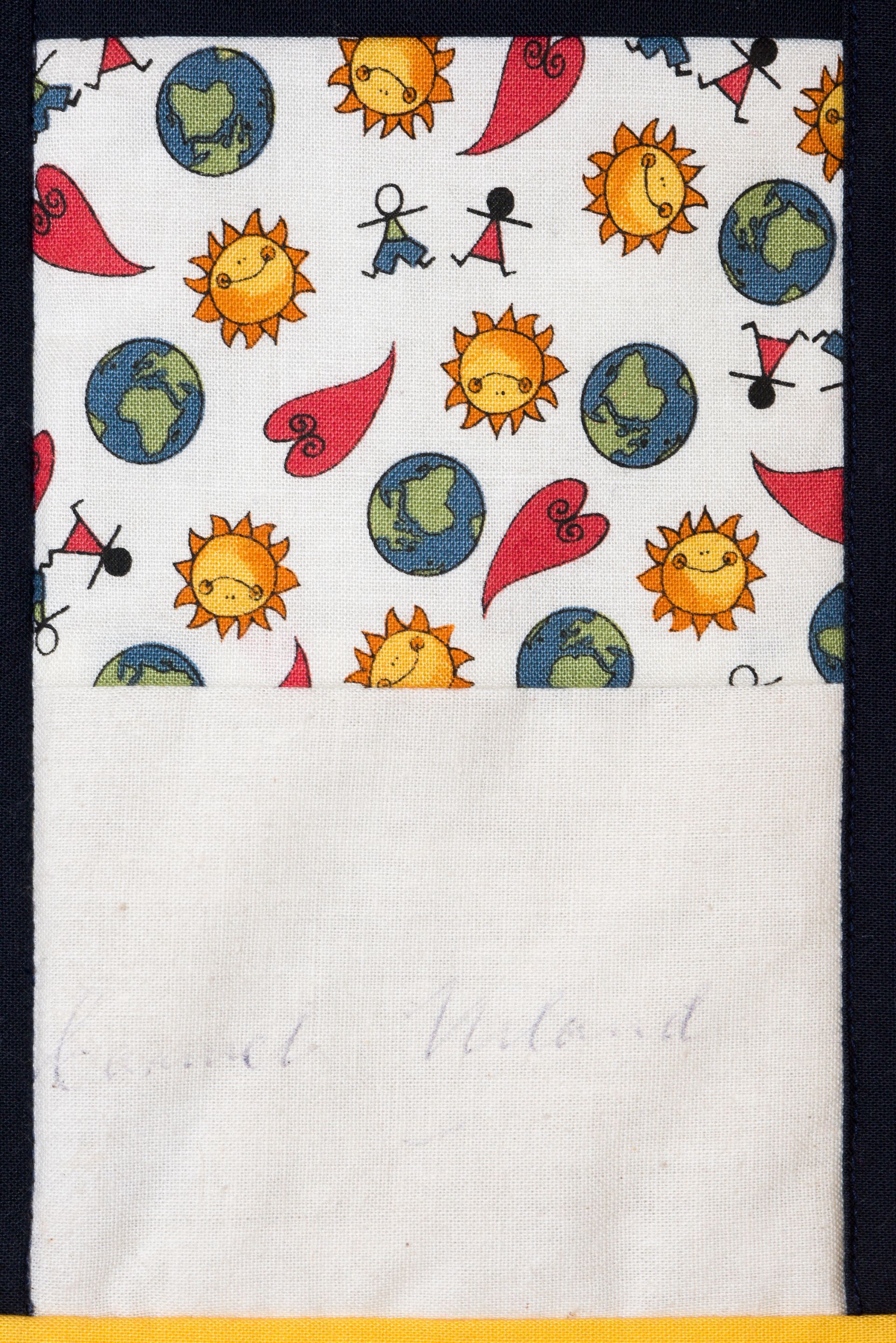 The calico rectangles are signed by Australian women who have recorded firsts or significant achievements in their fields of endeavour. The alternate patches of patterned fabric were selected to illustrate the signatories profession or achievement.