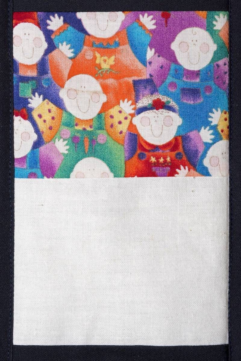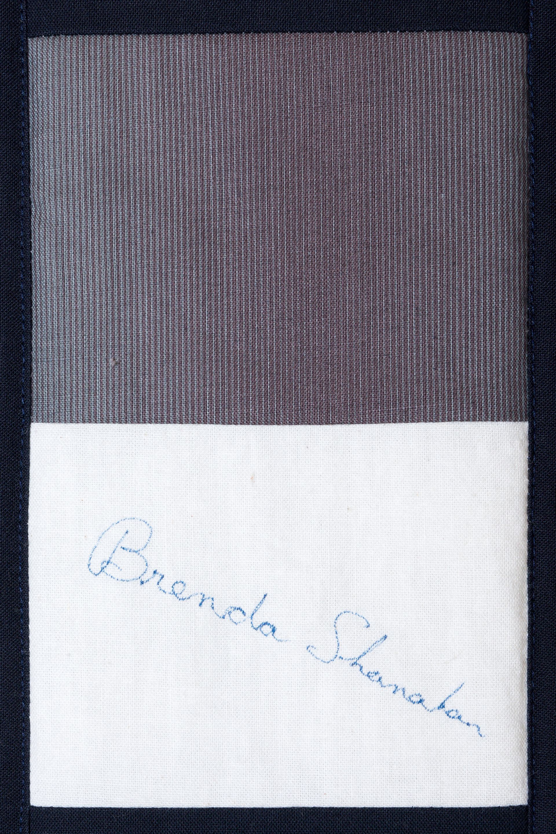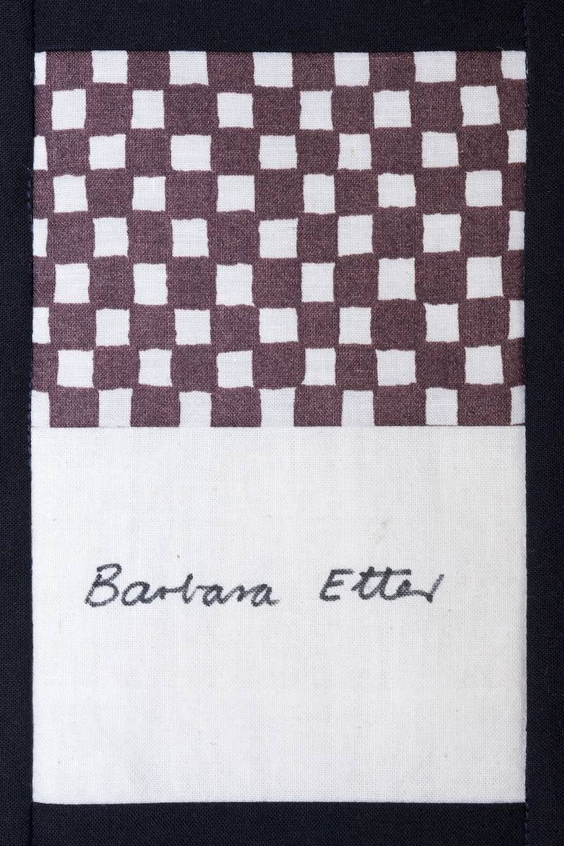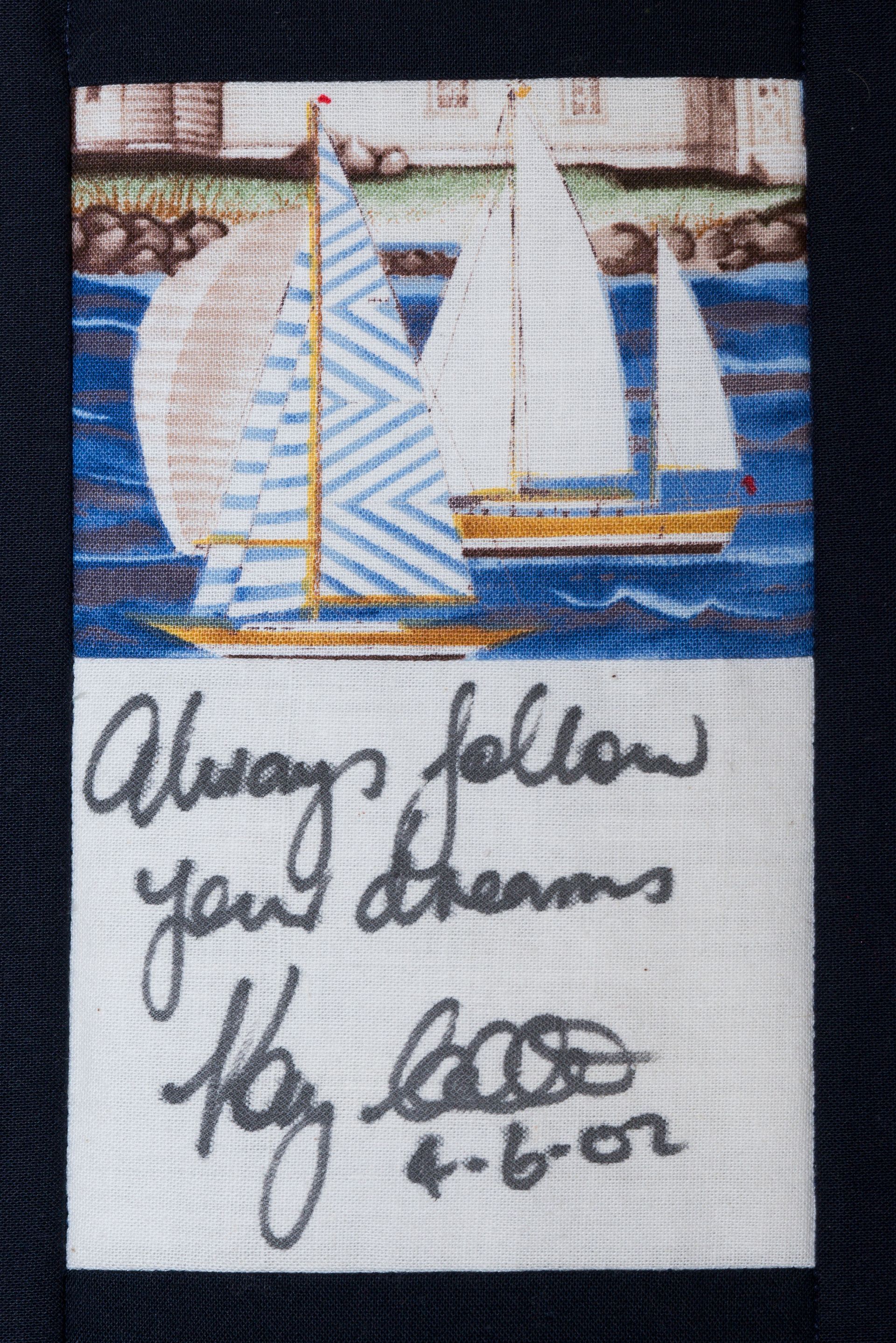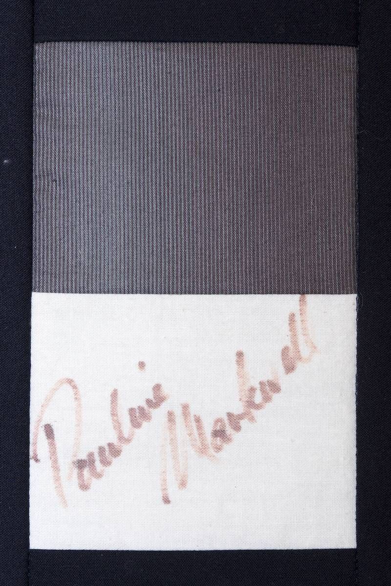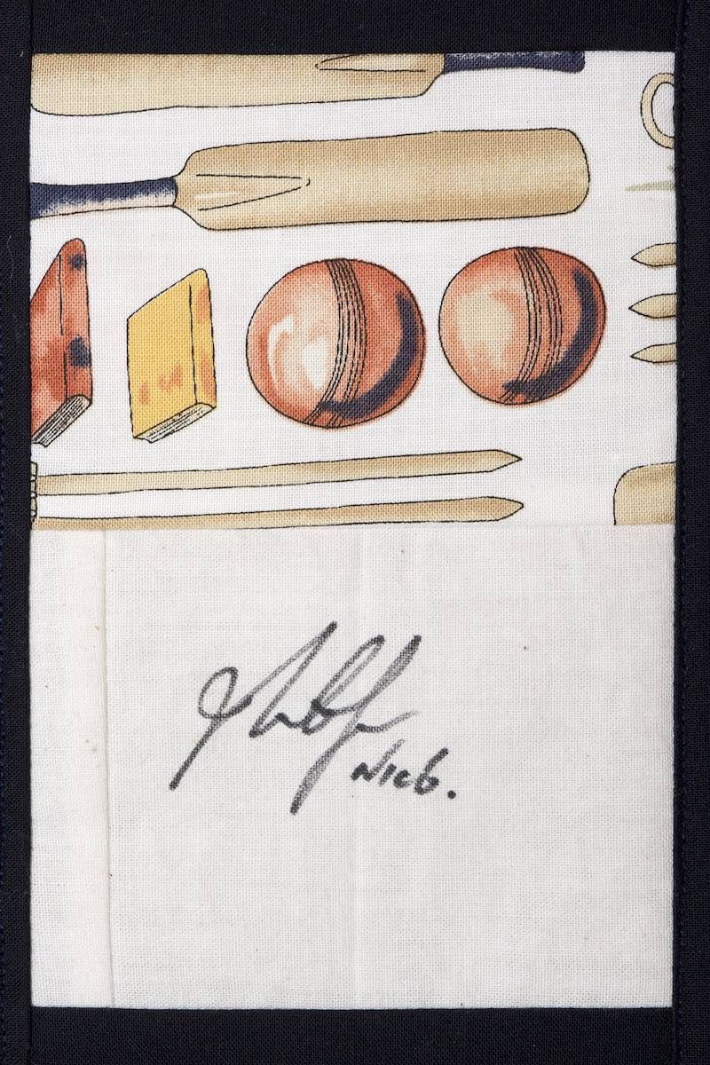 The calico rectangles are signed by Australian women who have recorded firsts or significant achievements in their fields of endeavour. The alternate patches of patterned fabric were selected to illustrate the signatories profession or achievement.