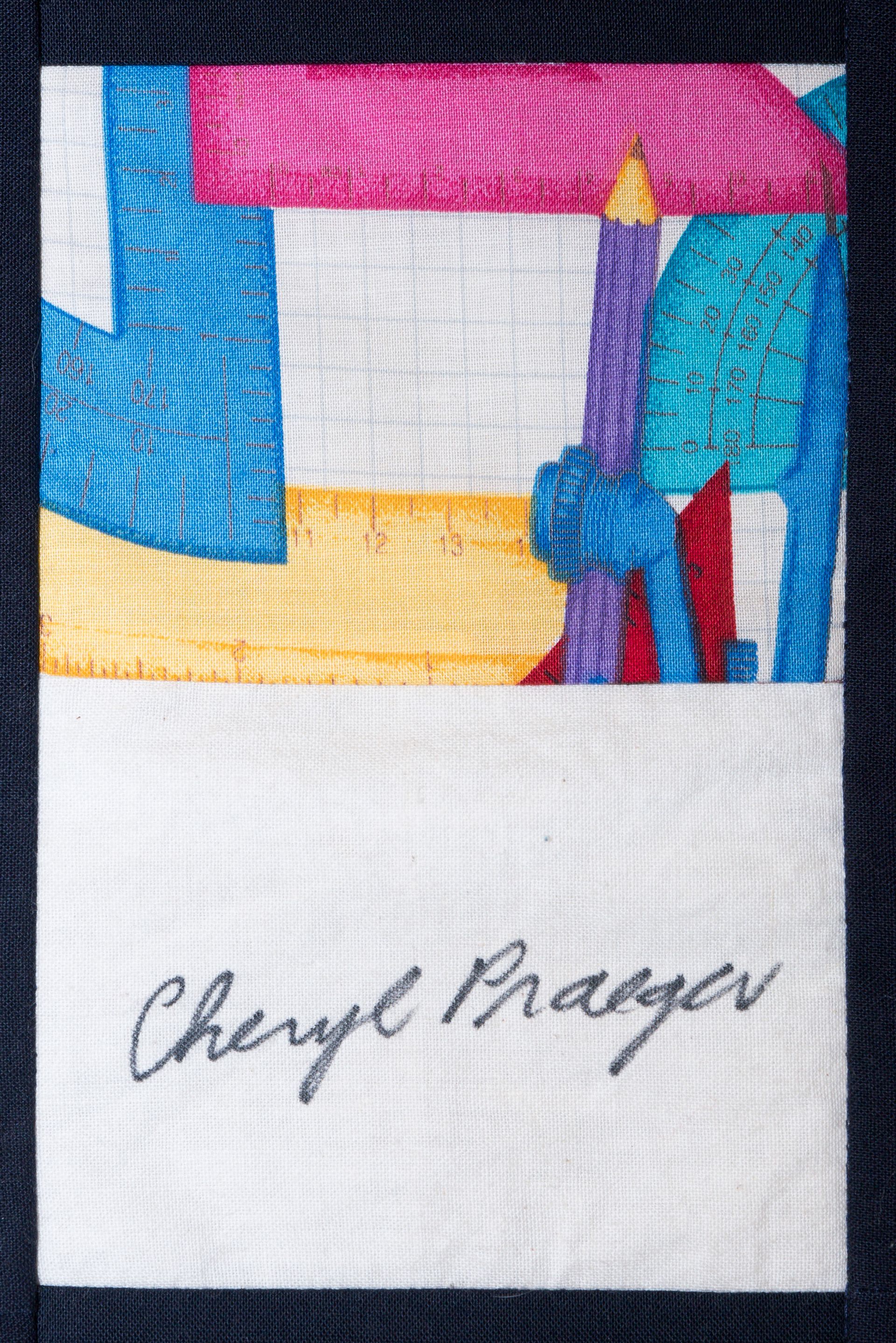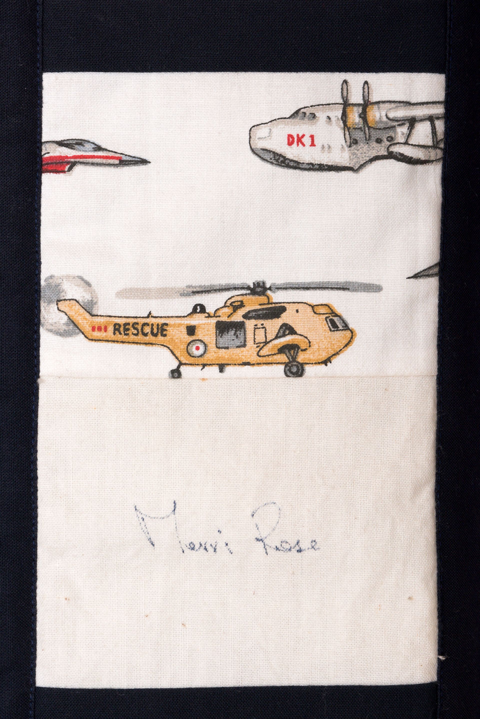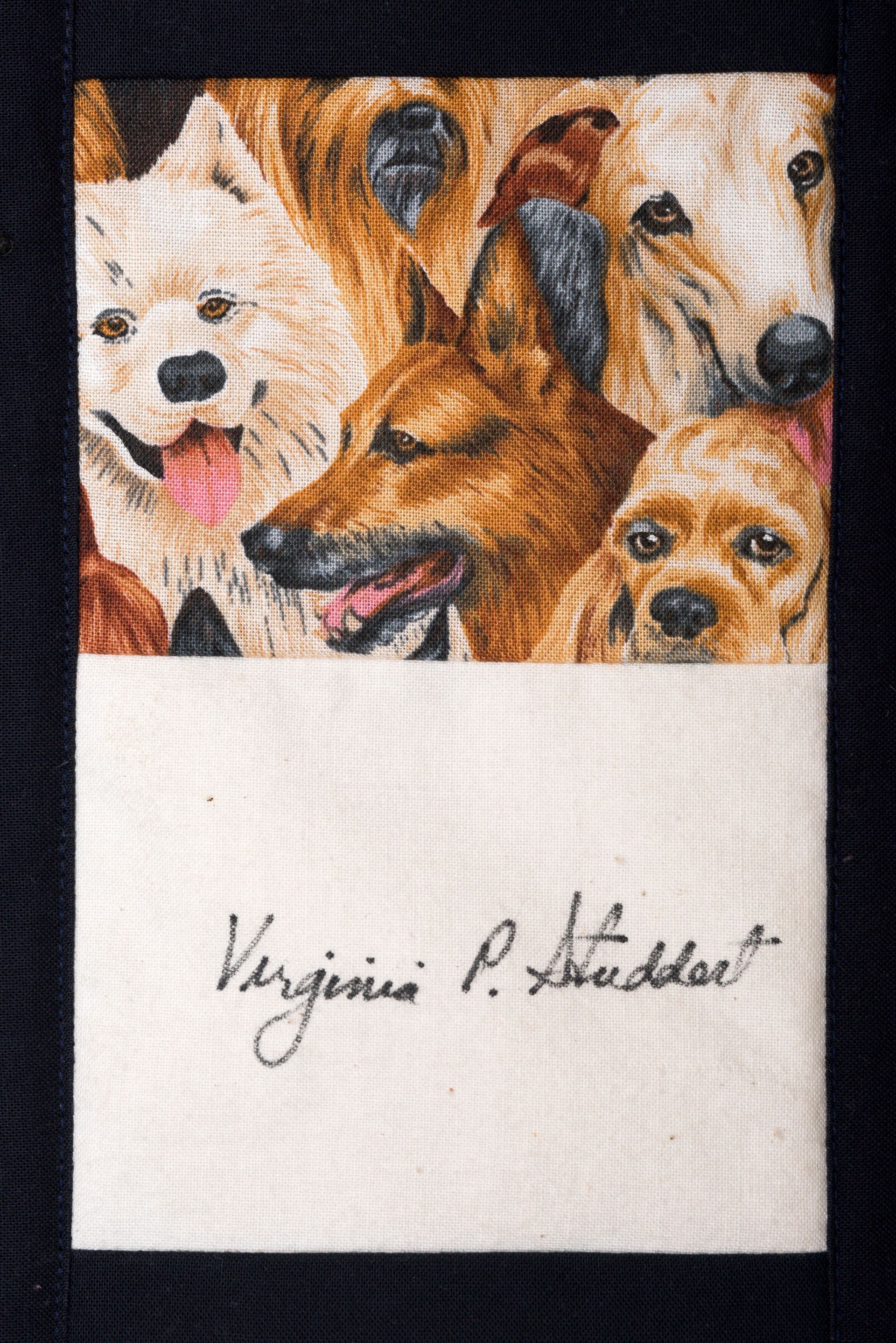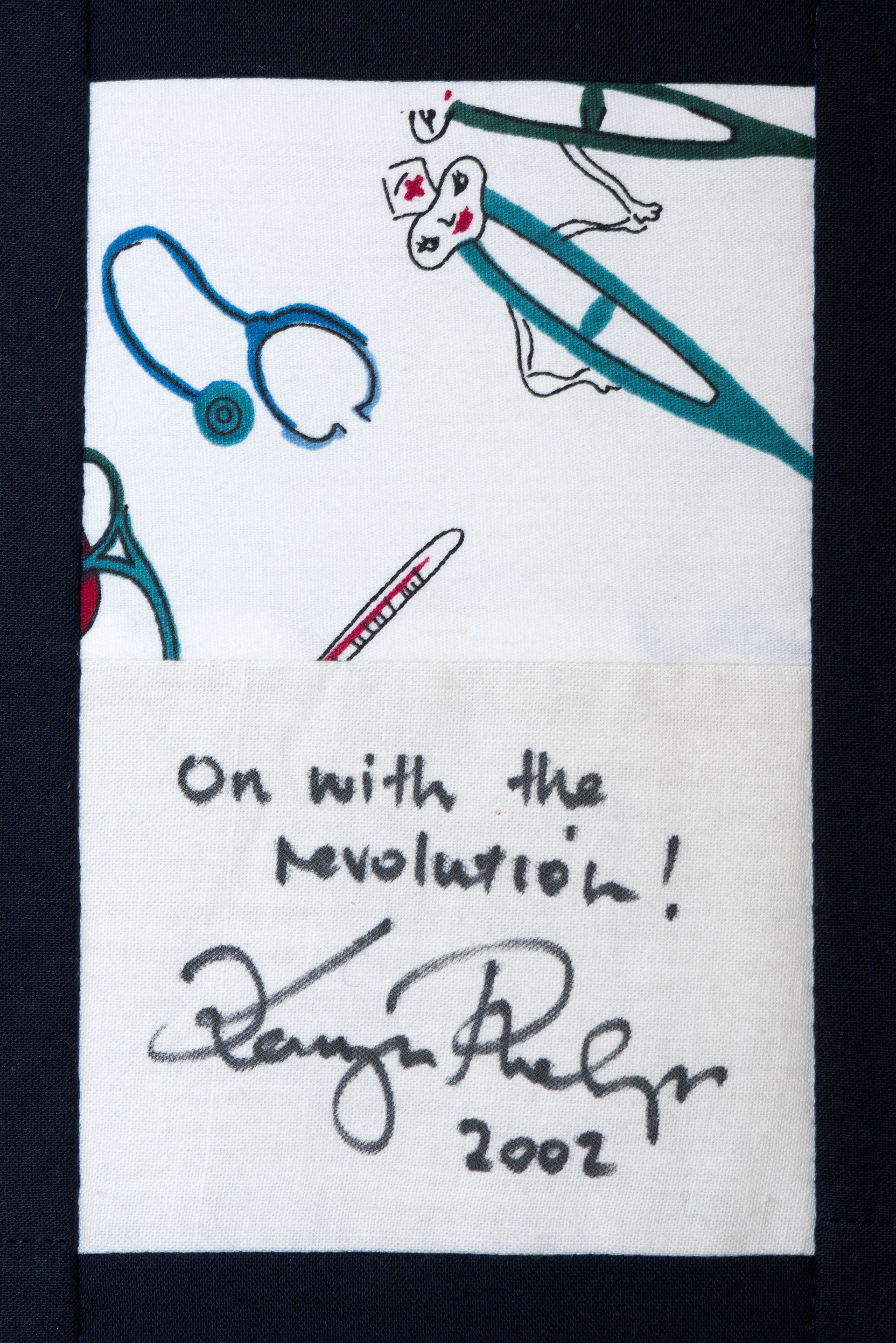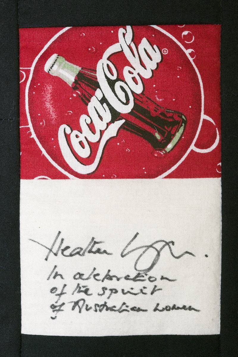 The calico rectangles are signed by Australian women who have recorded firsts or significant achievements in their fields of endeavour. The alternate patches of patterned fabric were selected to illustrate the signatories profession or achievement.