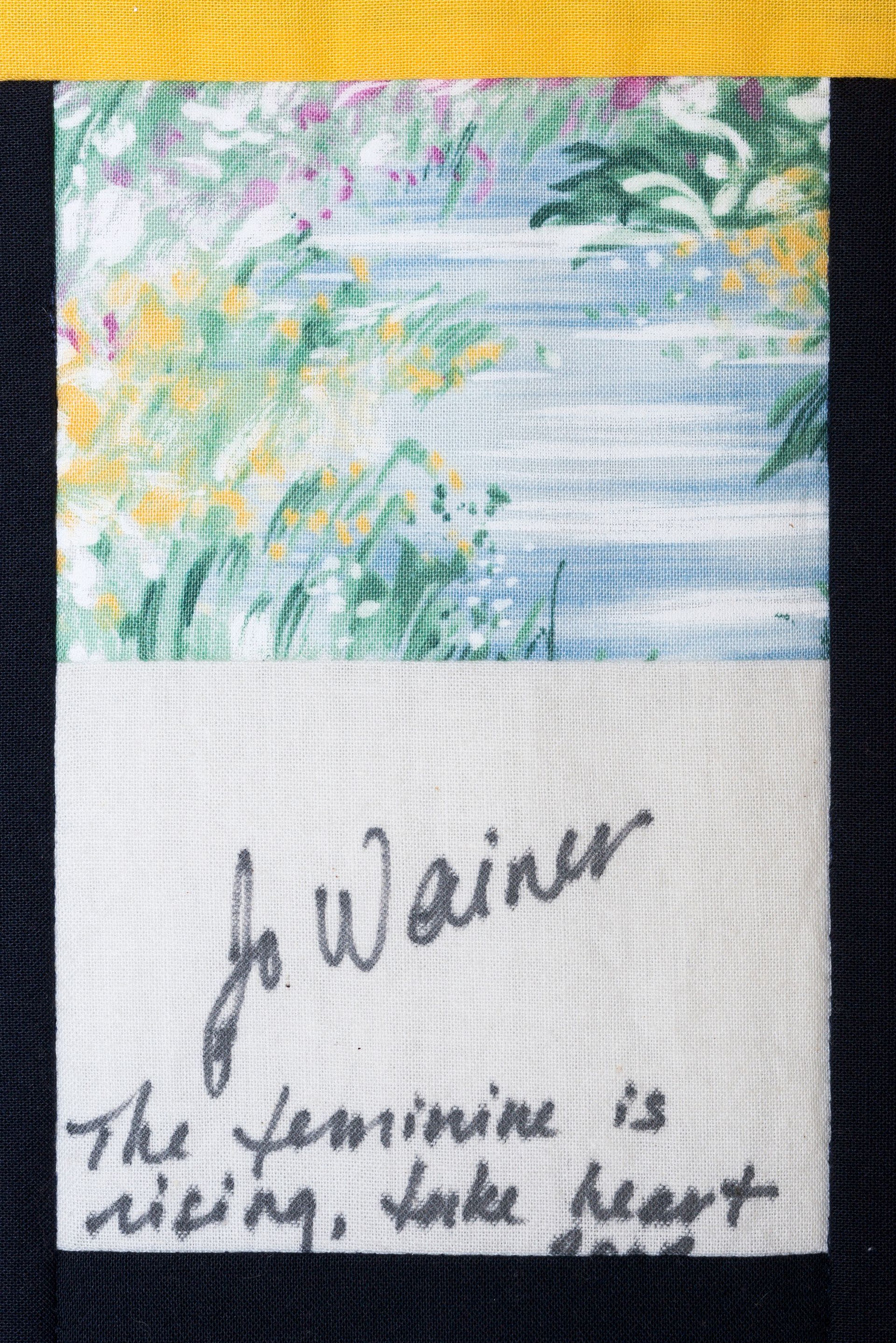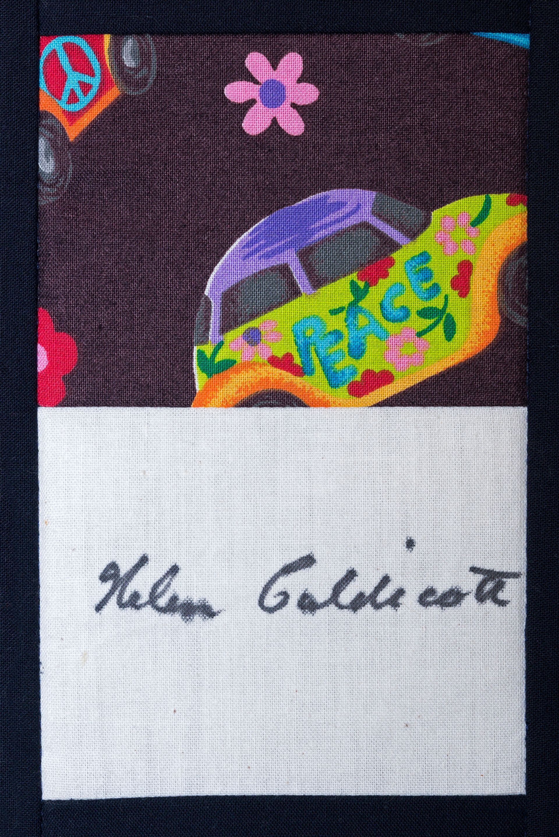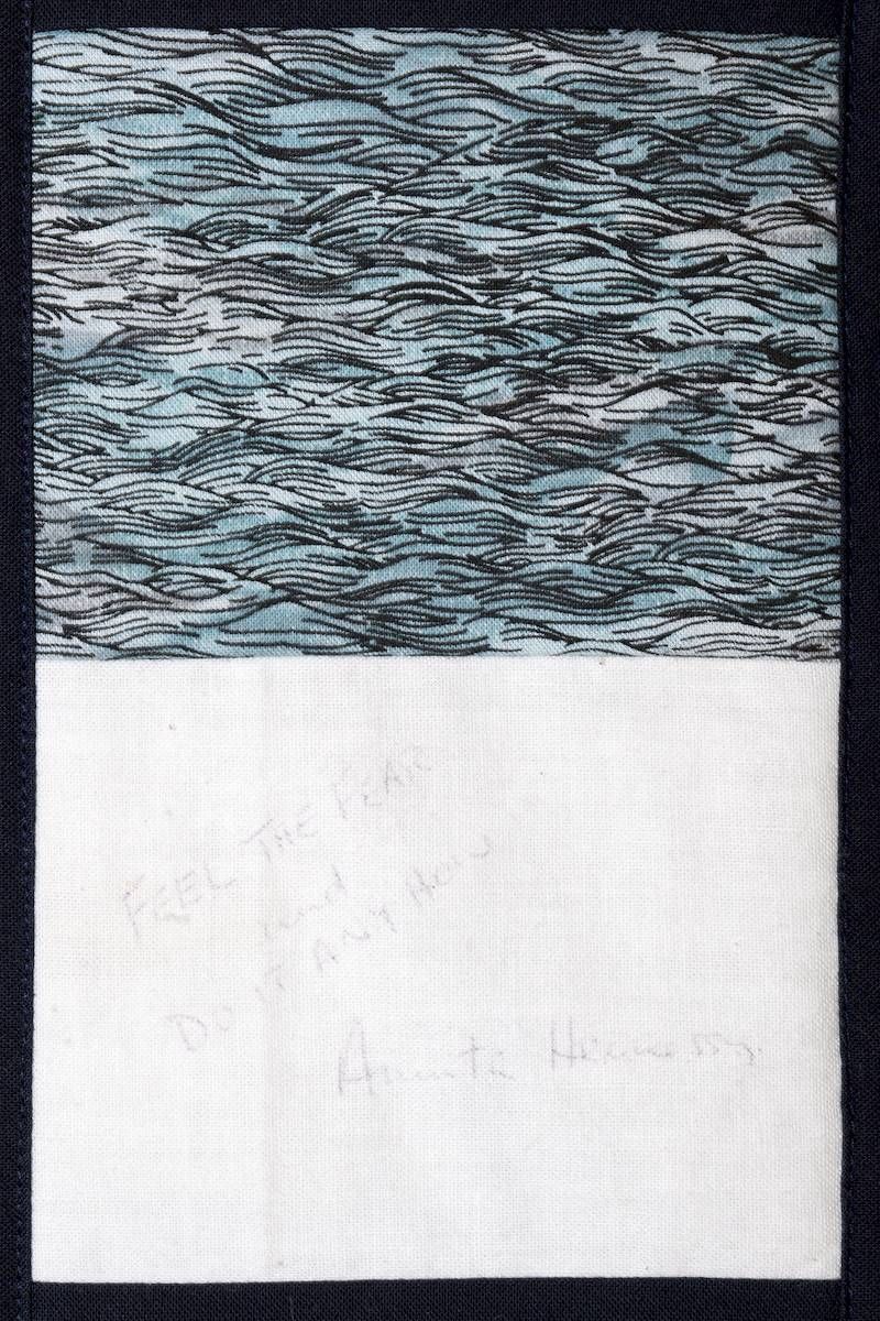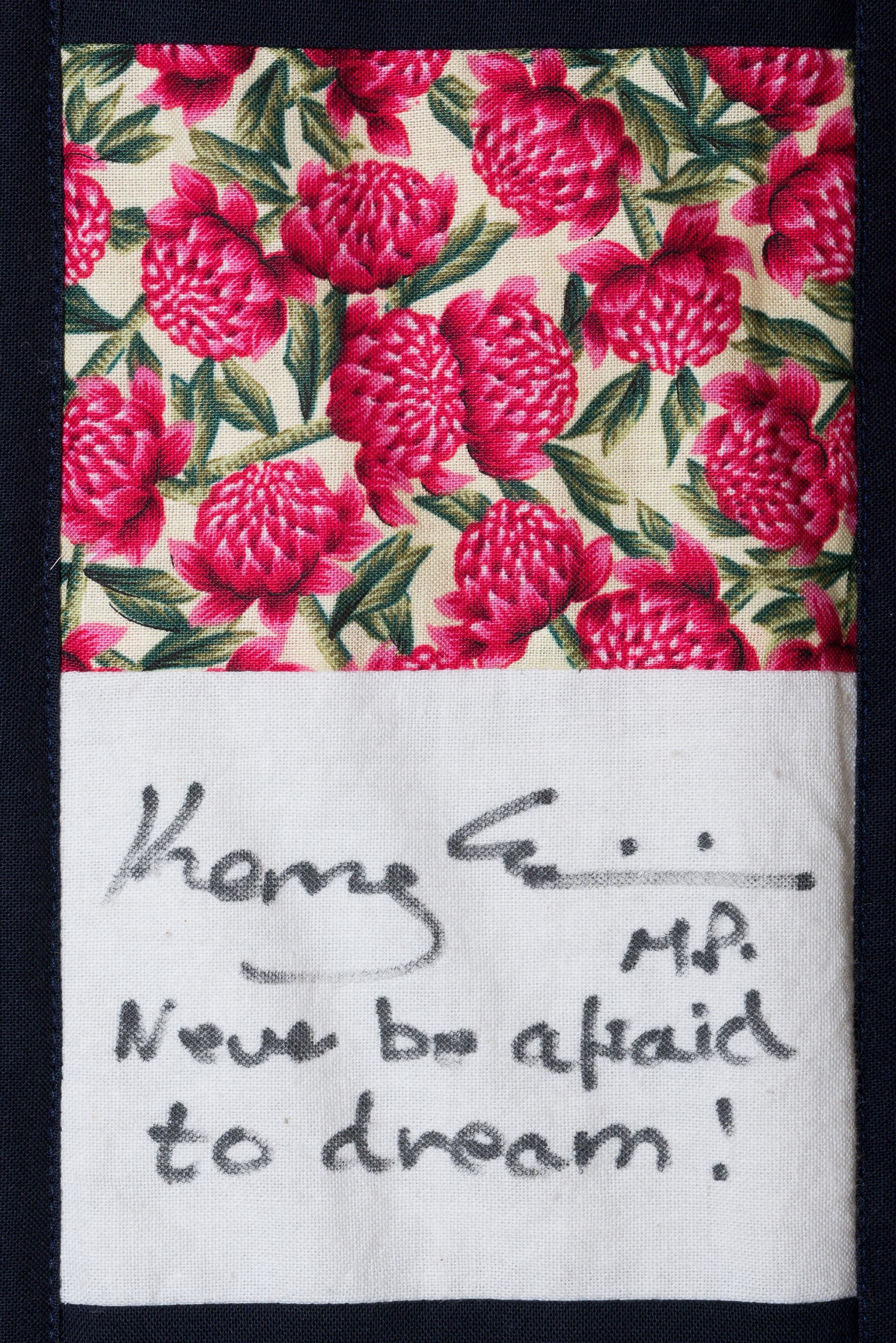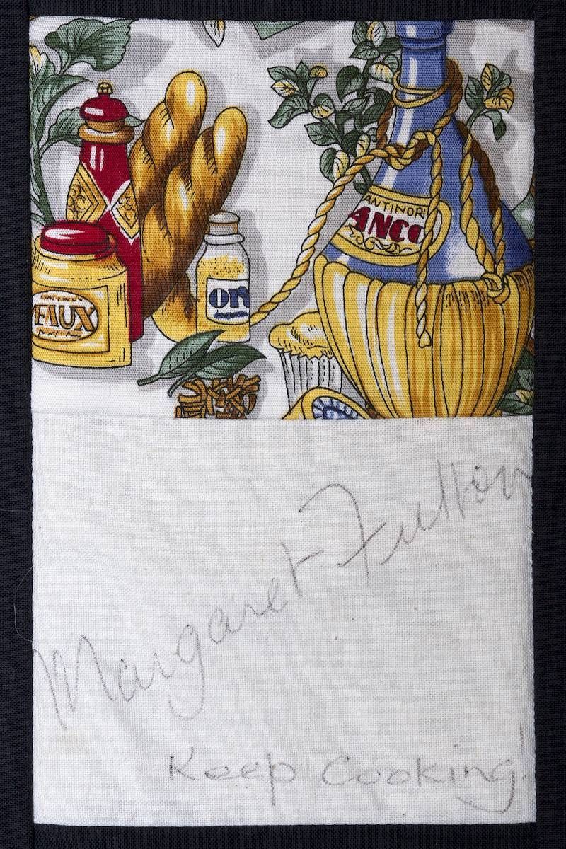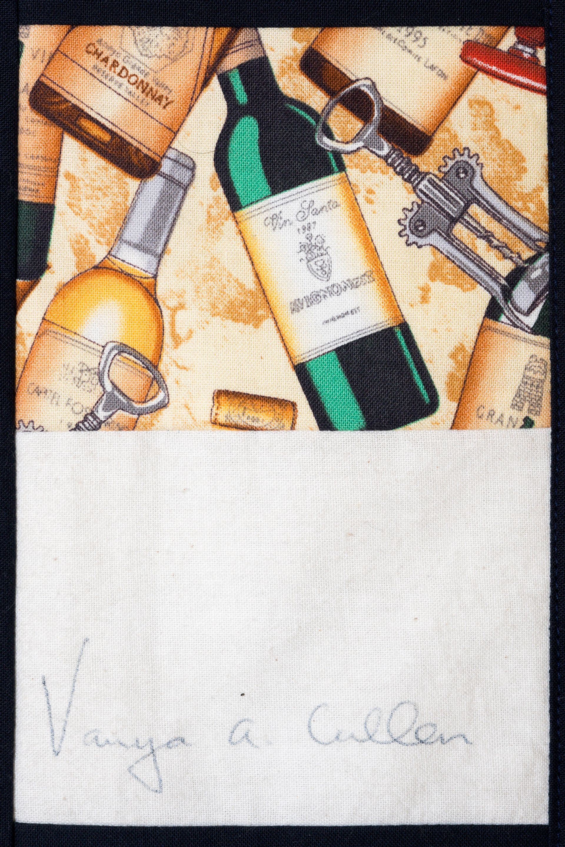 The calico rectangles are signed by Australian women who have recorded firsts or significant achievements in their fields of endeavour. The alternate patches of patterned fabric were selected to illustrate the signatories profession or achievement.
