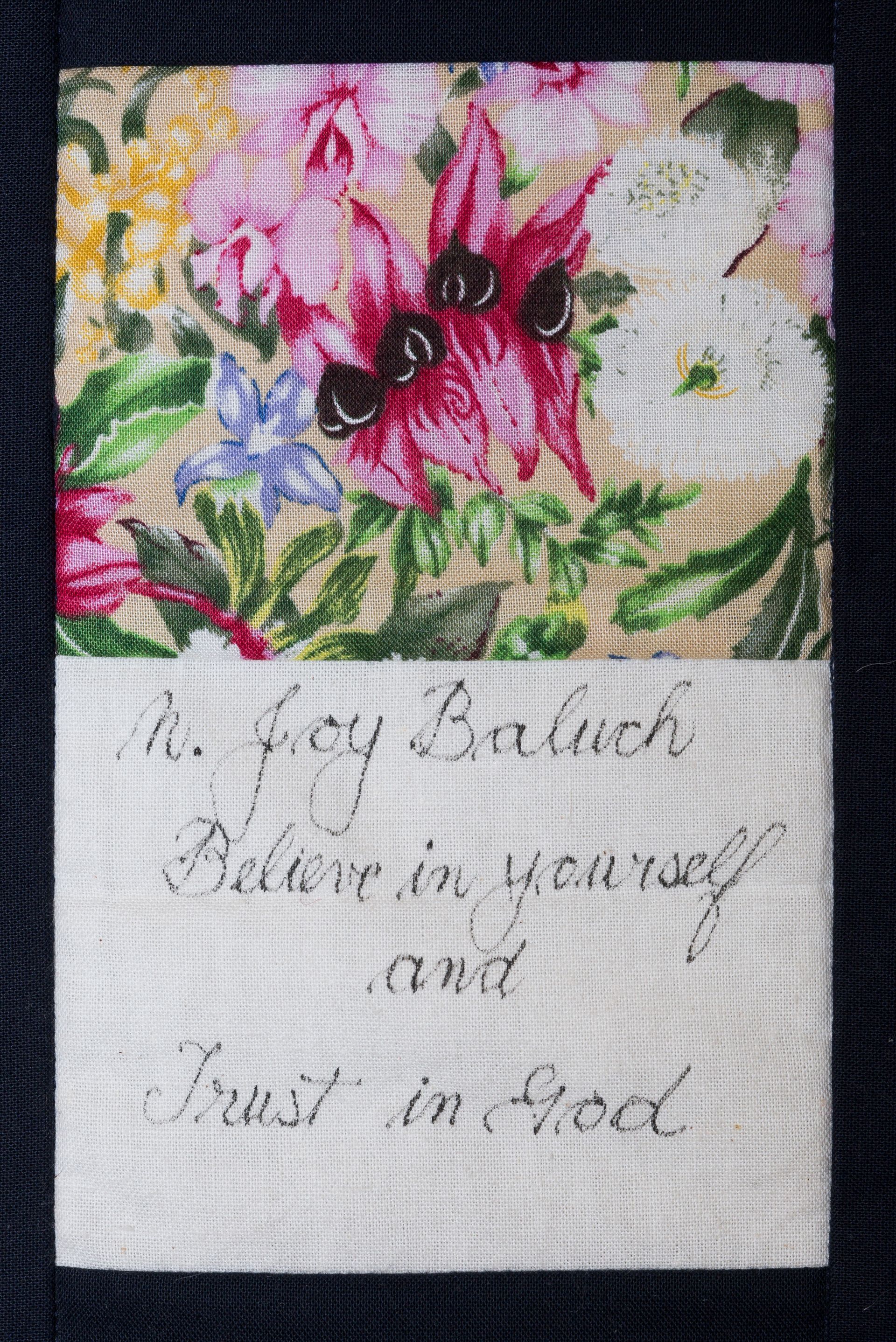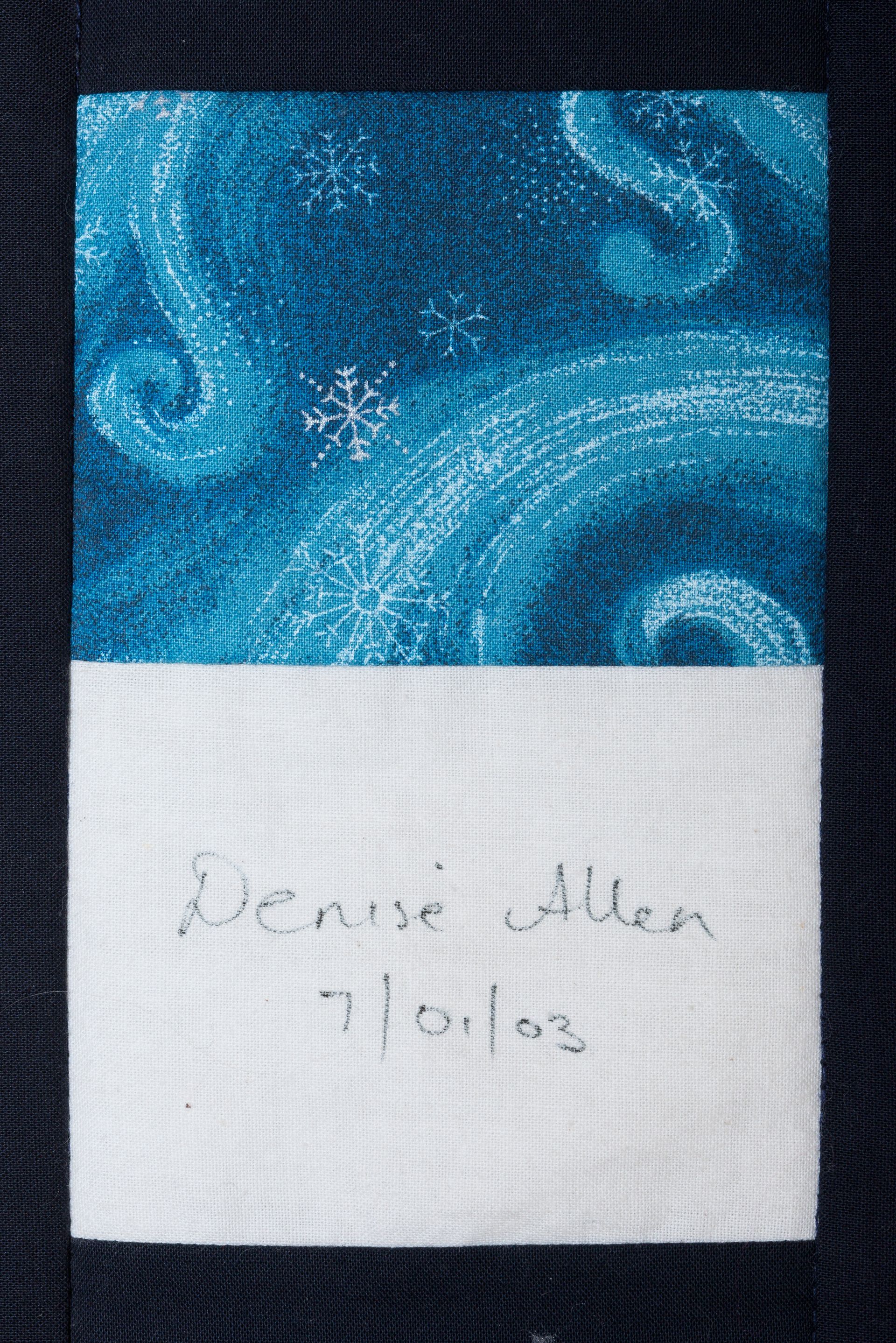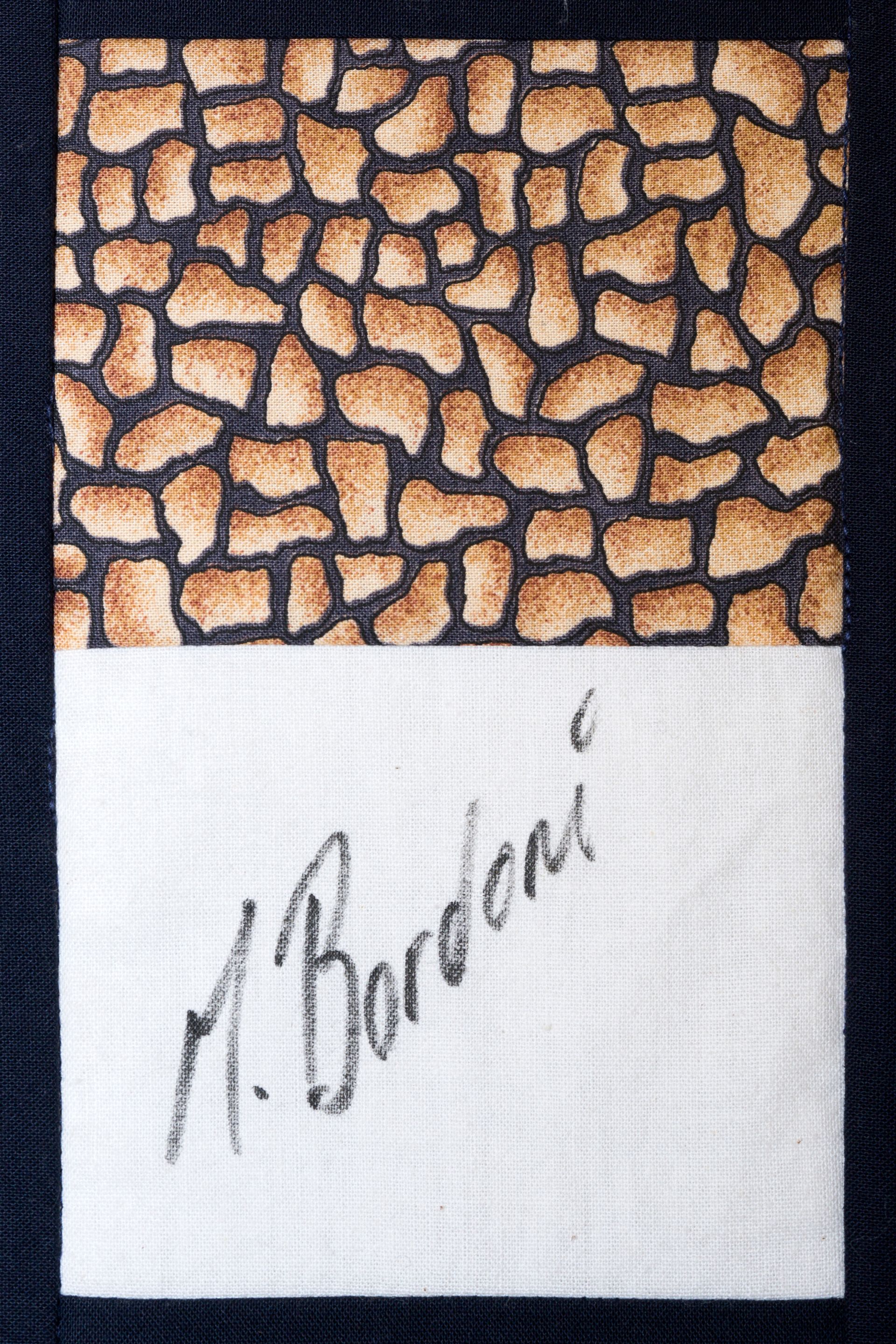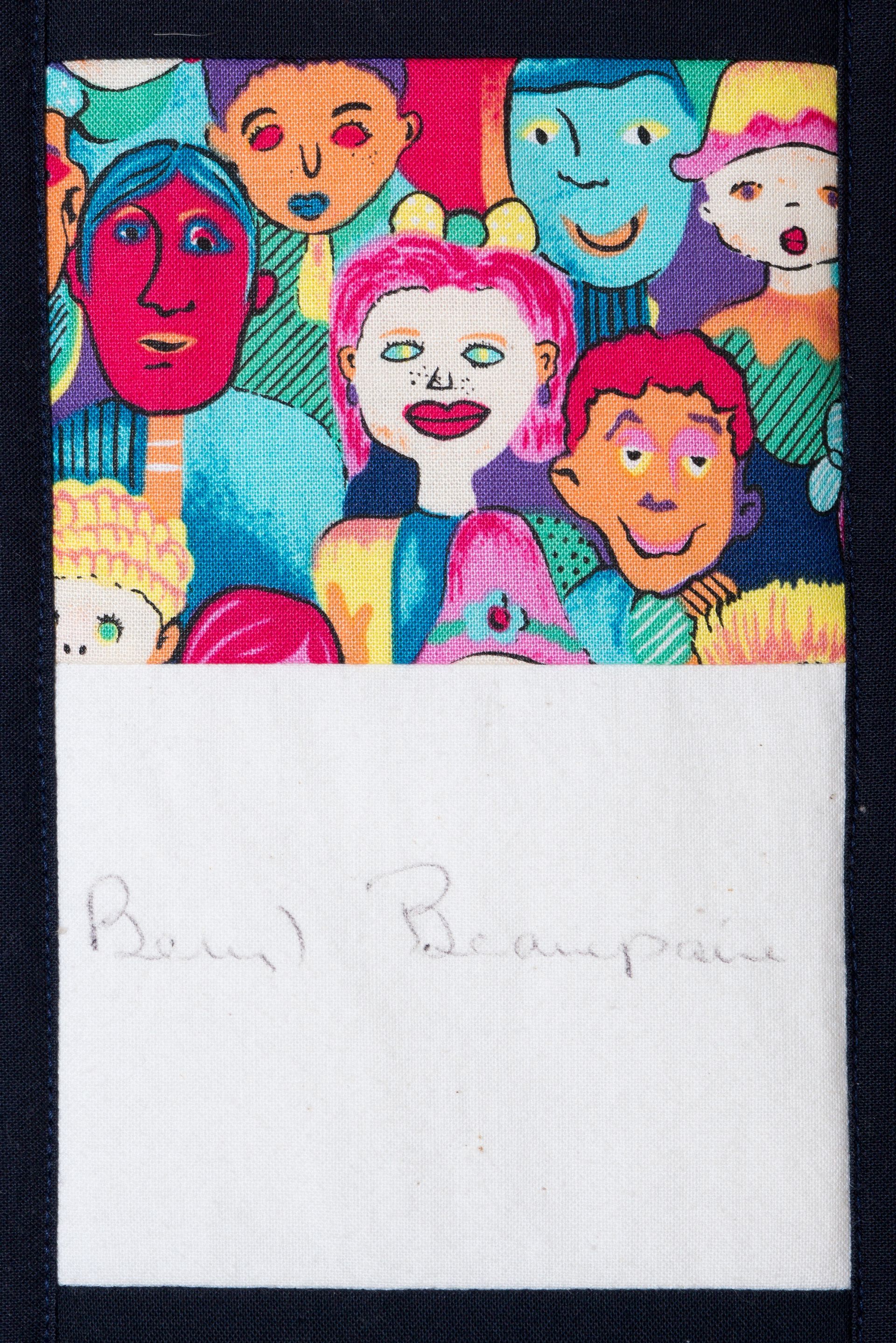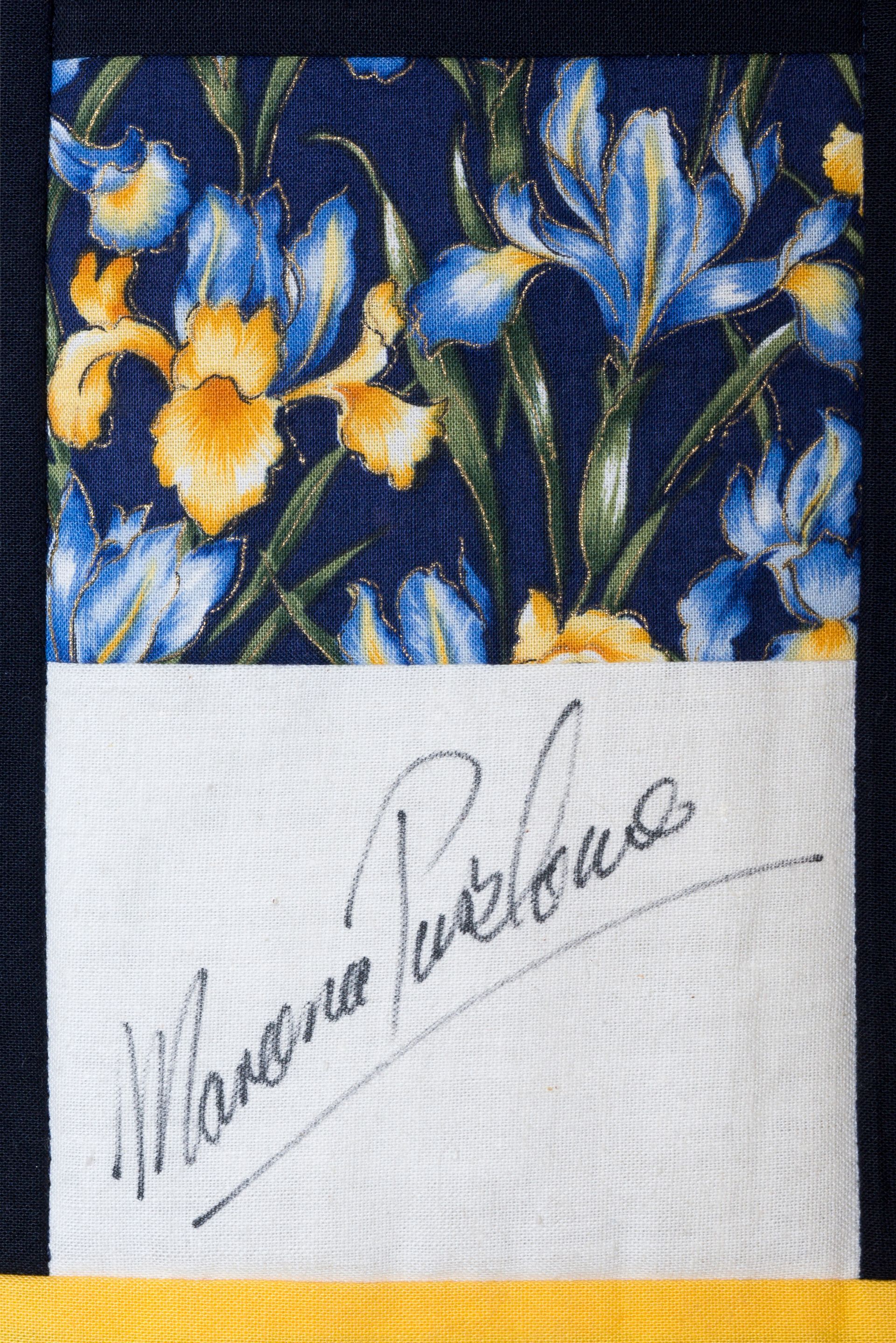 The calico rectangles are signed by Australian women who have recorded firsts or significant achievements in their fields of endeavour. The alternate patches of patterned fabric were selected to illustrate the signatories profession or achievement.