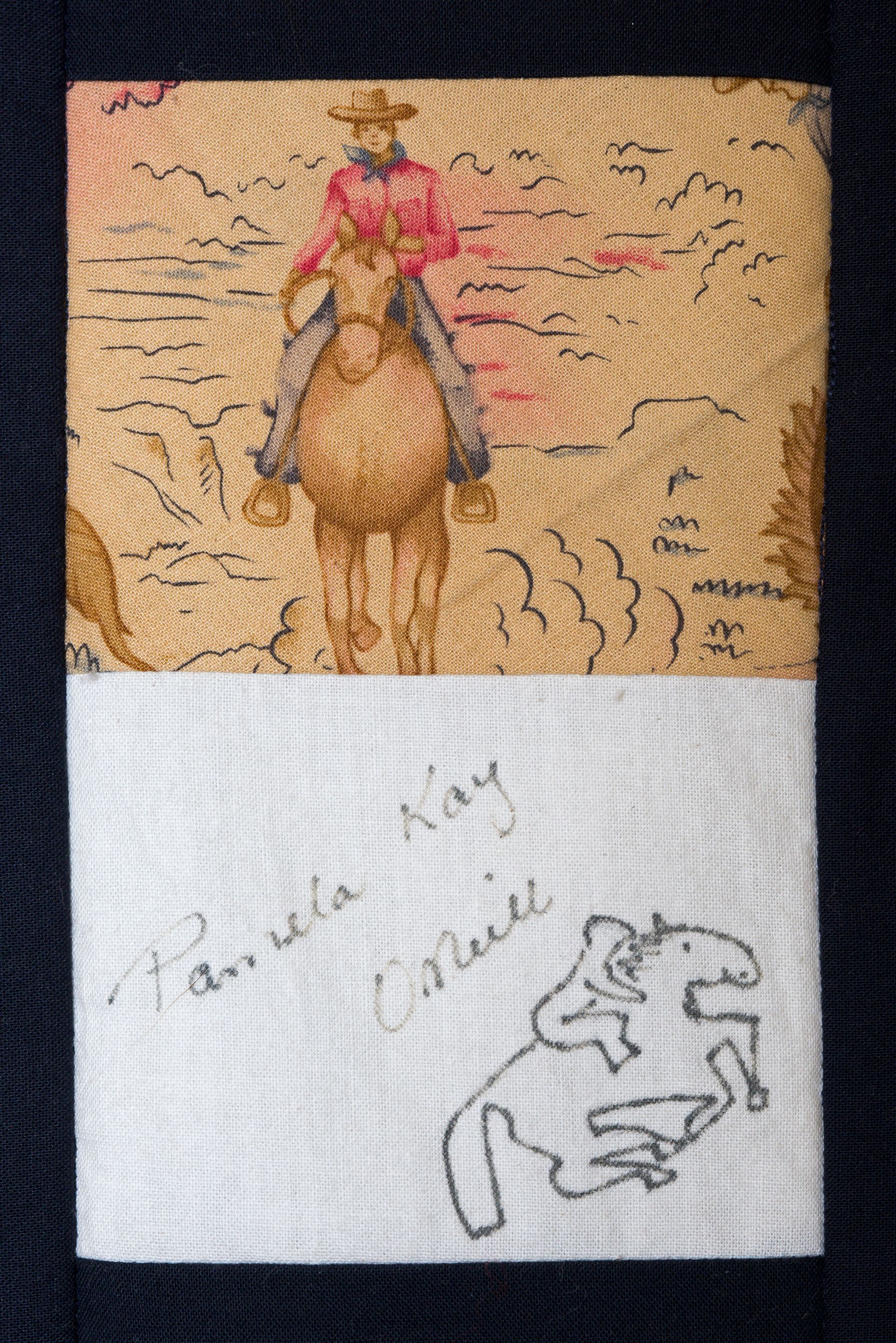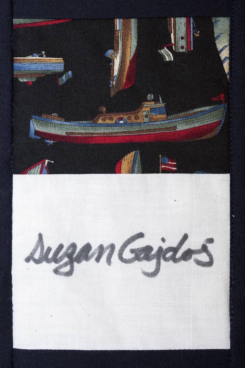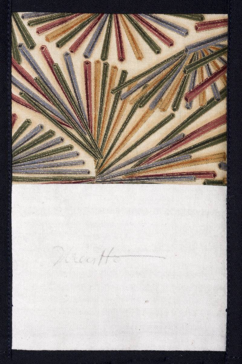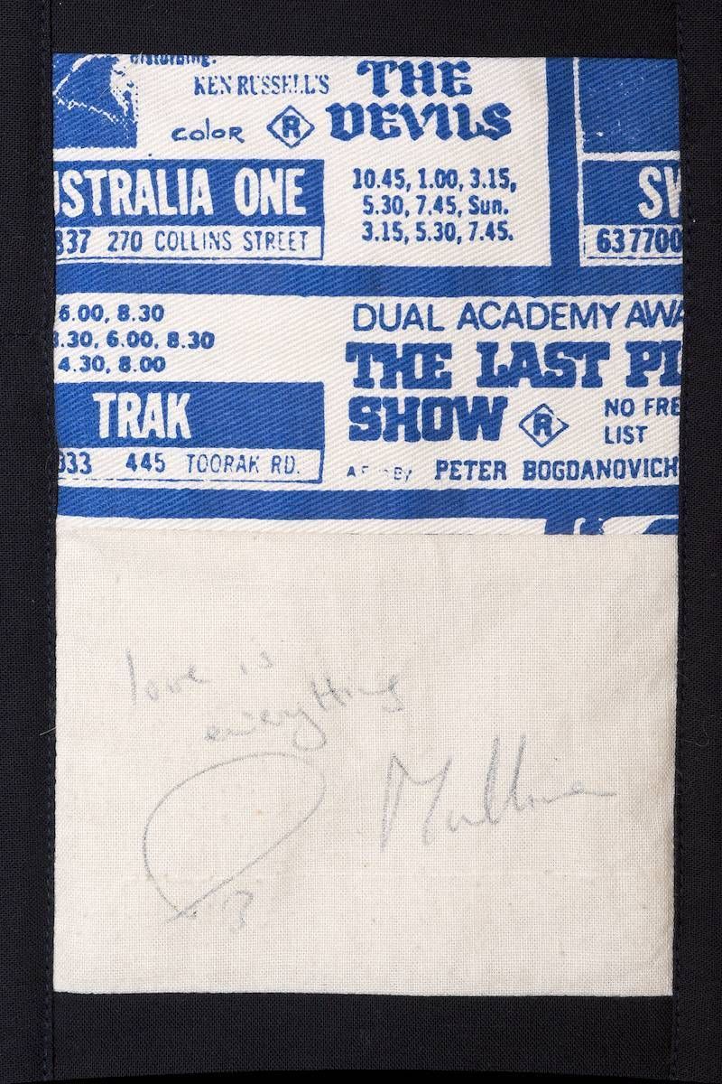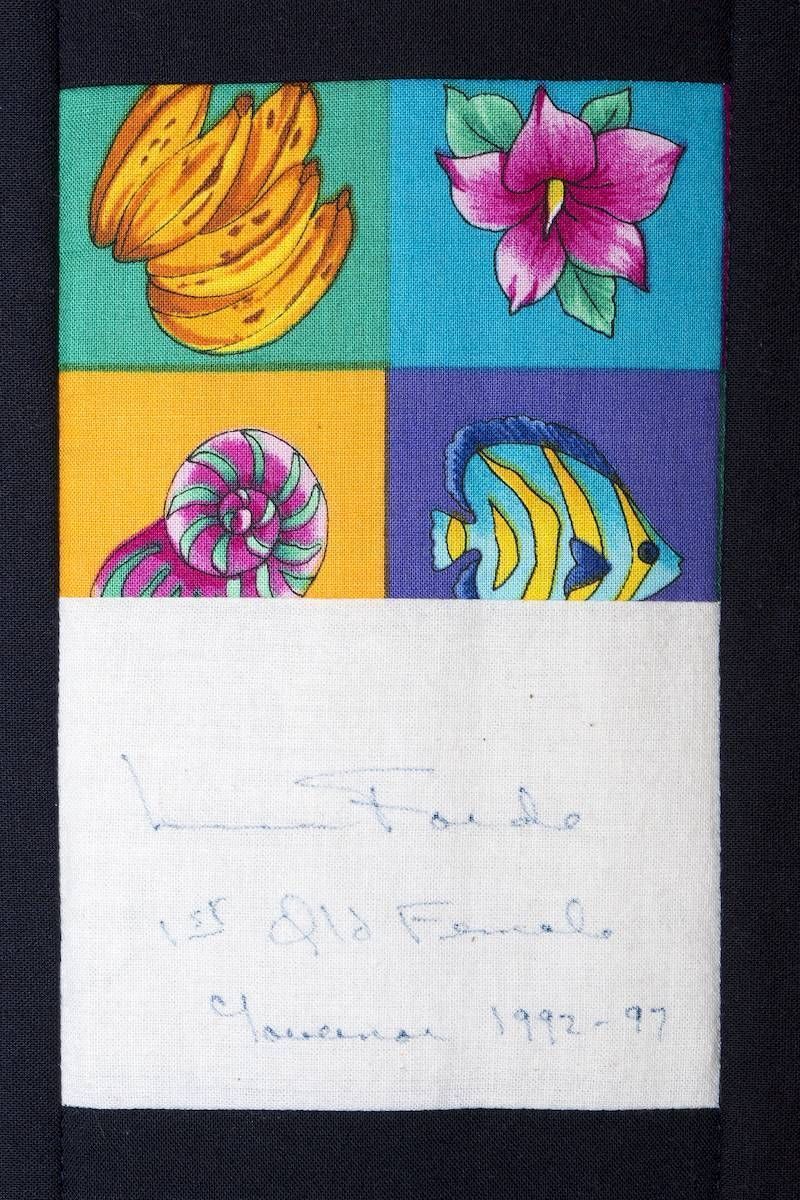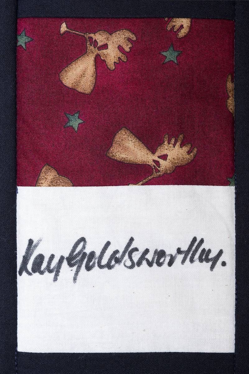 The calico rectangles are signed by Australian women who have recorded firsts or significant achievements in their fields of endeavour. The alternate patches of patterned fabric were selected to illustrate the signatories profession or achievement.