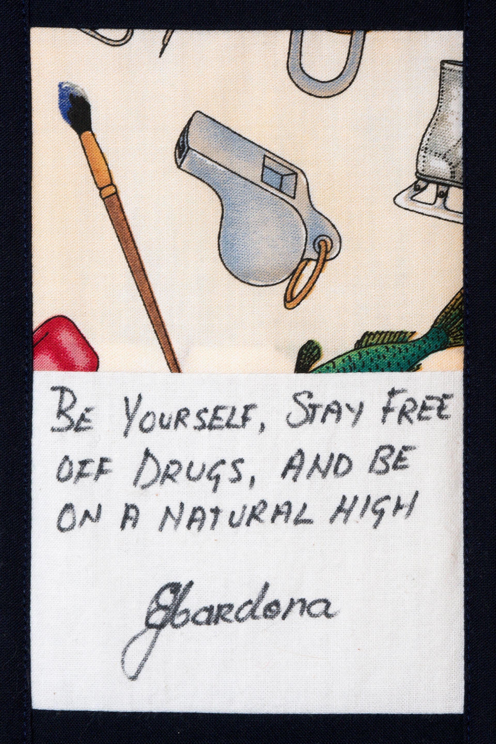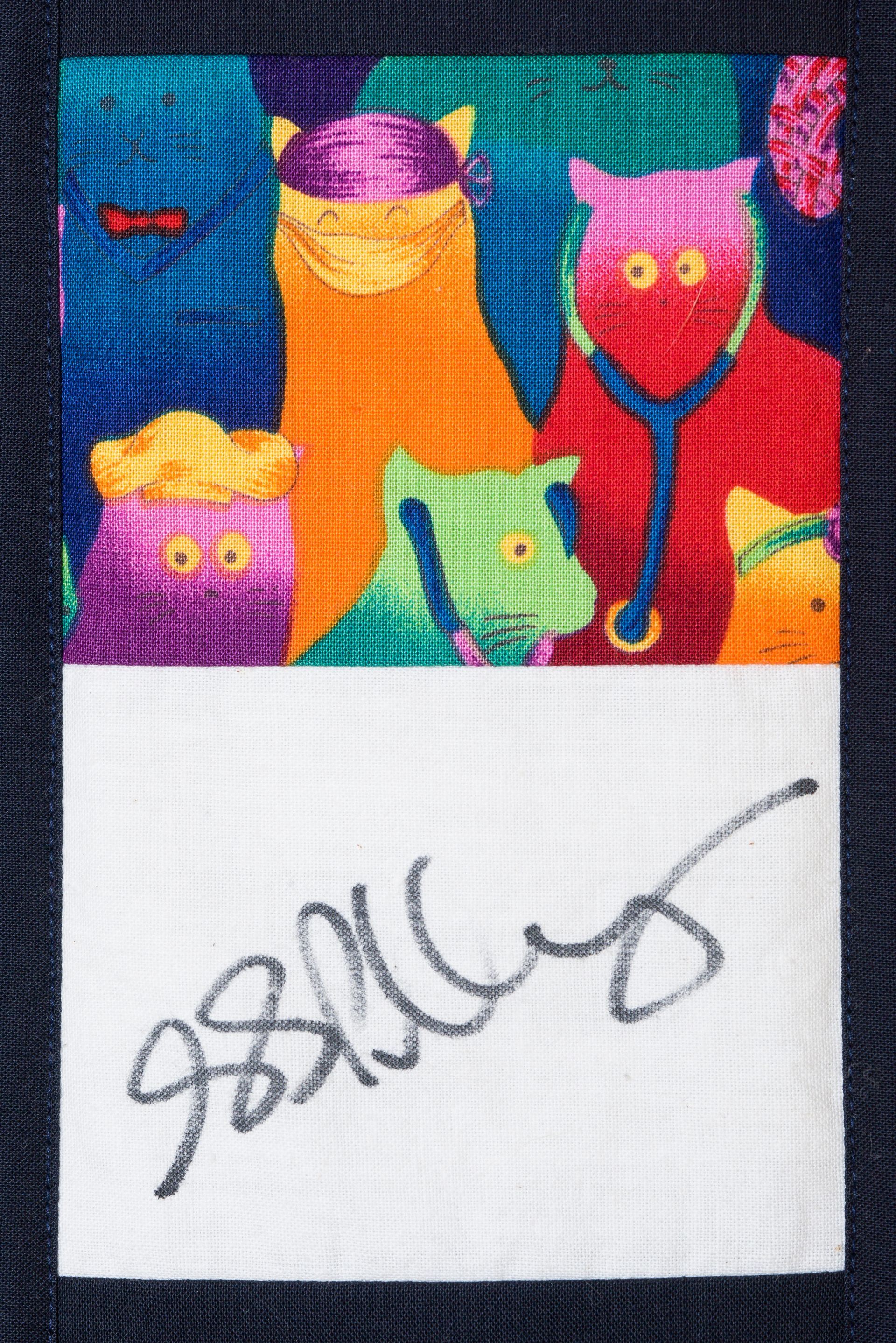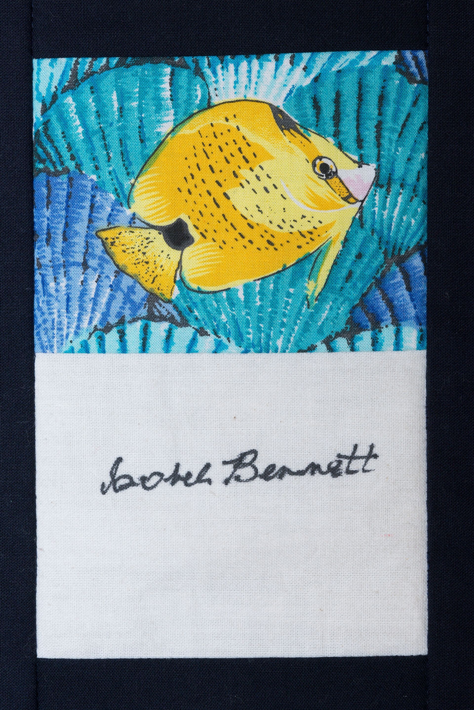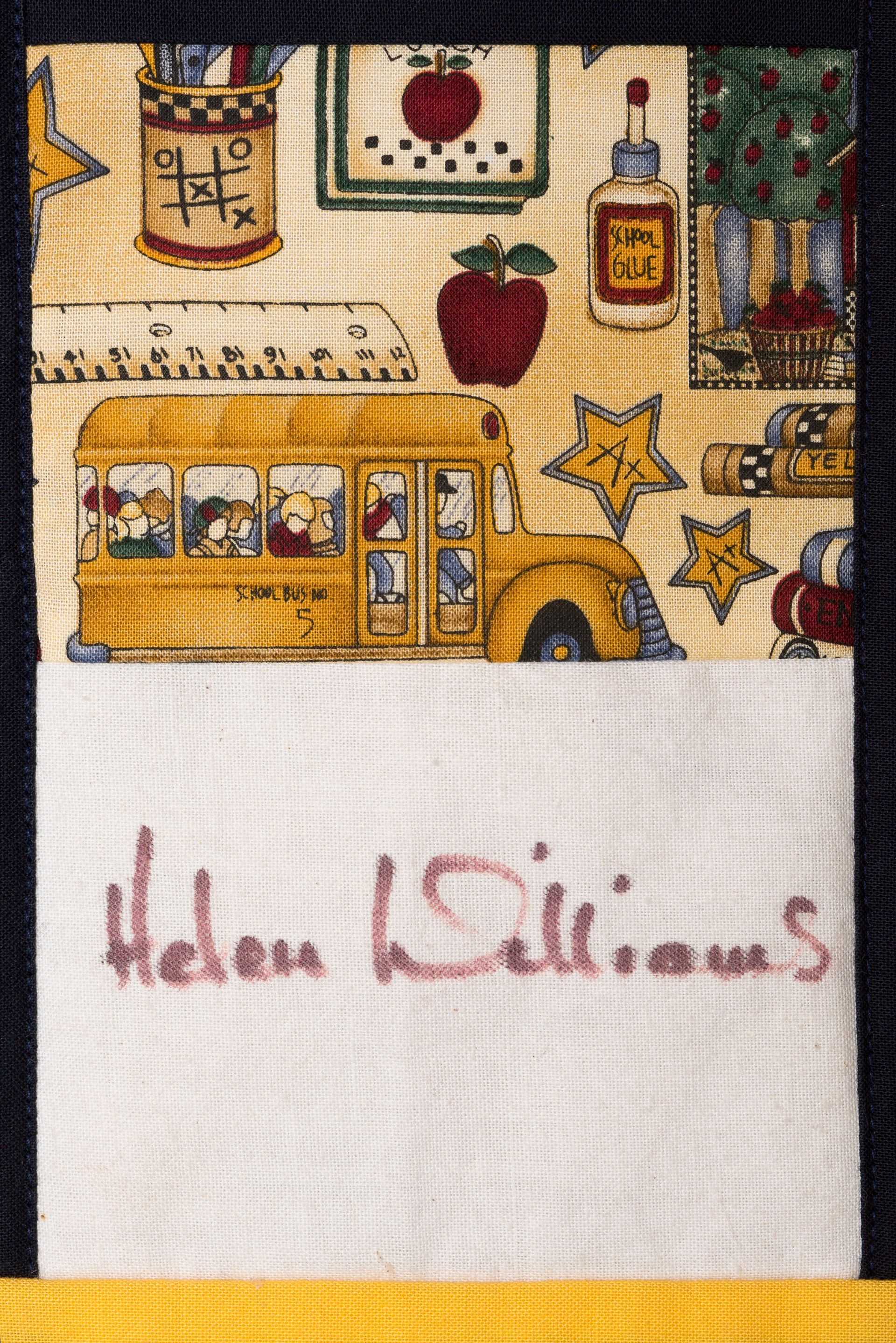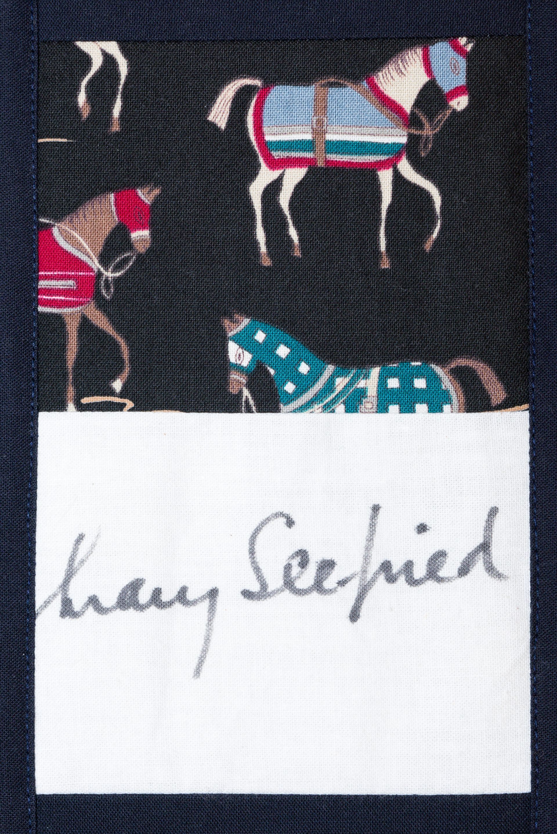 The calico rectangles are signed by Australian women who have recorded firsts or significant achievements in their fields of endeavour. The alternate patches of patterned fabric were selected to illustrate the signatories profession or achievement.